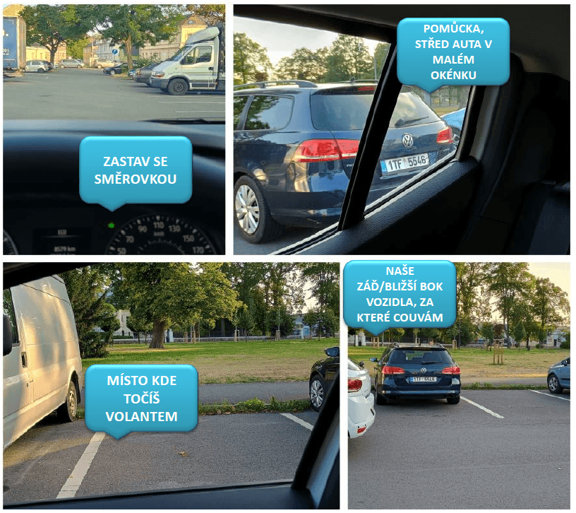- Pomocné body, kdy točím nebo rovnám, jsou obdobné, pokud parkuji vpravo nebo vlevo.